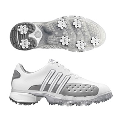 No, these aren't a tribute to any 80s hair band; get that thought out of your head. Honestly, we doubt that many of the members of Poison are looking as golf shoe sponsorships. Instead, the adidas Powerband women's golf shoes are a tribute to your necessity to have stylish, high-performance golf shoes. This is one tribute that sings perfectly. The adidas Powerband women's golf shoes are loaded with adidas-exclusive technology like the adiPRENE+ that optimizes comfort and efficiency, as well as the Torsion System that provides a sturdy support structure while maintaining flexibility.Probably the coolest feature of the adidas Powerband women's golf shoes is it's namesake; the Powerband chassis. This cool technology provides increased support, offering greater control and power, two things that are critical to a great golfer. If you can't power that drive and put it in the right spot, then you might as well just pick up the ball and throw it. If you prefer that option, you should try shopping for baseball cleats; we think you might be destined for another sport.adidas Powerband Running White/Metallic Silver/Running White